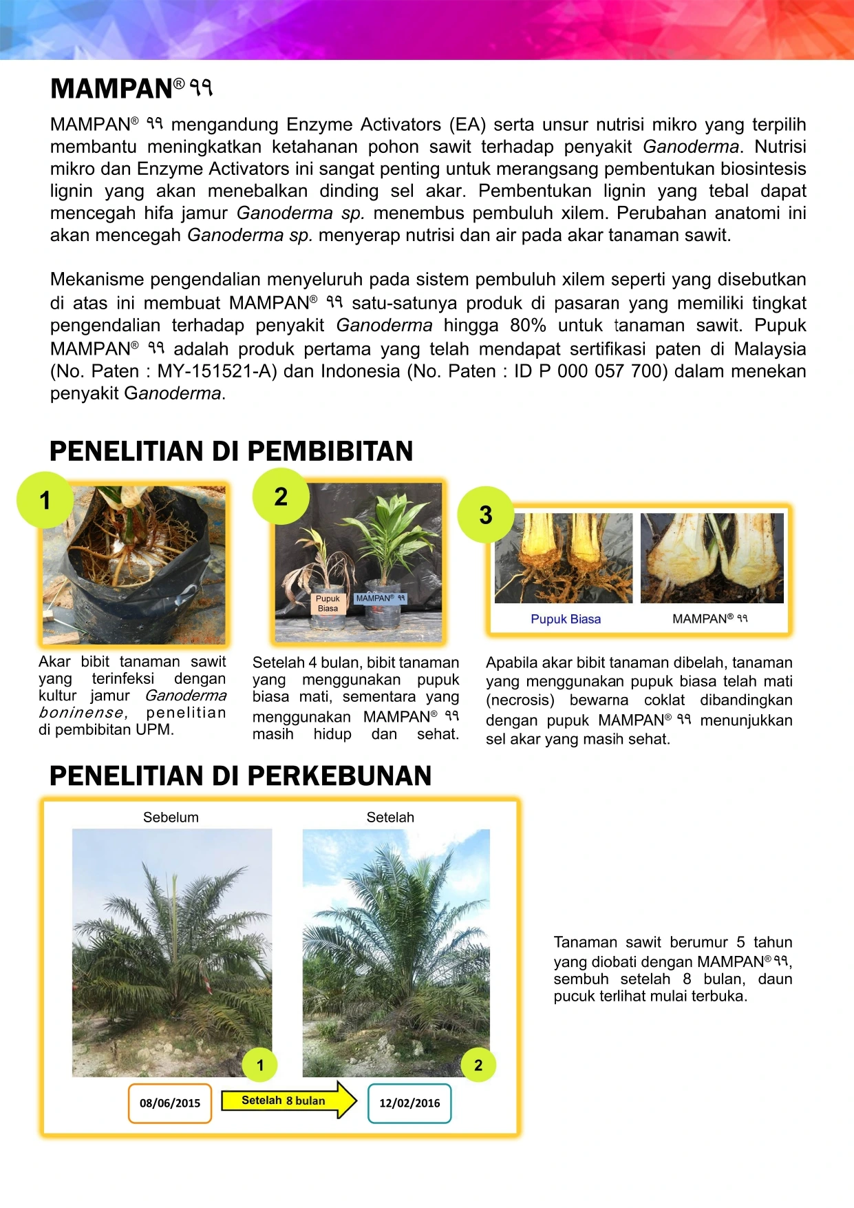 Pupuk pengendalian penyakit GONODERMA hingga 86%.